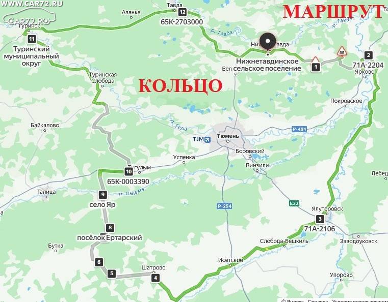 Второй маршрут Тюмень – Ярково – Ялуторовск – Тюмень 324 км.