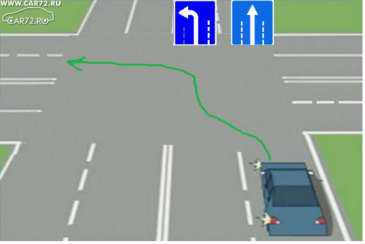Или можно с крайне правой (прямо), на перекрестке перестроиться в крайнюю левую (налево), руль чуть-чуть вправо дать в конце "перестроения" и проехать пару миллиметров "сохраняя" первоначальное направление движения? :-D