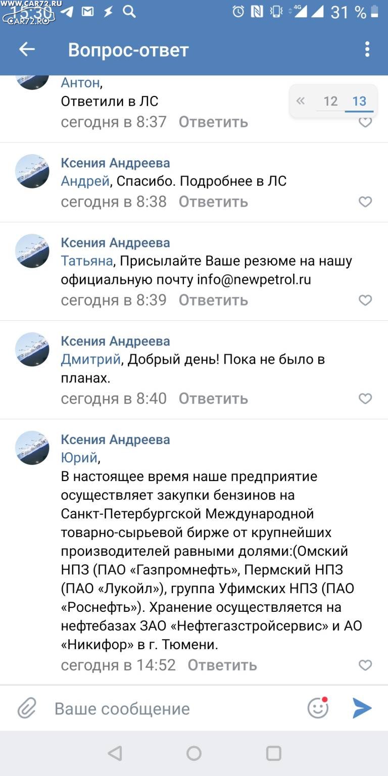 только три человека из "пострадавших" есть на каре, а сколько ещё автомобилистов которые не входят в касту кар72? и которые при загоревшемся "чек" едут на другую заправку и заправляют нормальный бенз до полной и не парятся с разборками с заправкой?