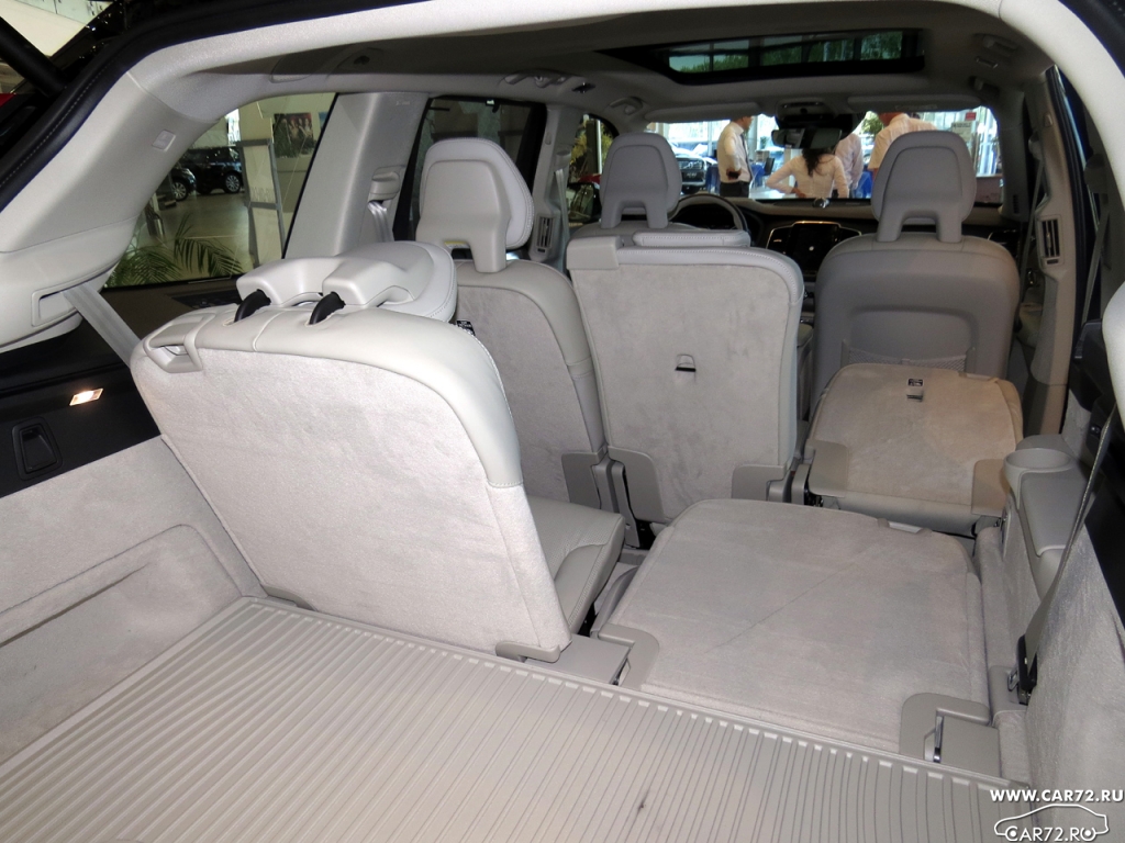 Салон XC90 – это самый роскошный интерьер, когда-либо созданный специалистами Volvo. Самым удивительным элементом является сенсорный экран на центральной консоли, который выполняет центральную функцию управления средствами и системами нового автомобиля. Система управления практически лишена кнопок и представляет собой совершенно новый интерфейс для взаимодействия водителя с автомобилем, предлагая продуманный и удобный доступ к функциям и услугам на базе Интернета. Такое решение позволило создать просторный салон в современном дизайне, где отсутствует нагромождение средств управления системами автомобиля. Салон нового XC90 предлагает такие материалы, как мягкая кожа и отделка из дерева. Рукоятка рычага КПП украшена хрусталём известного шведского производителя Orrefors, а кнопки системы Start/Stop и контроля громкости по форме напоминают огранённый бриллиант. В процессе разработки дизайнеры уделяли огромное внимание качеству отделки. В семиместном автомобиле установлены сиденья инновационной формы, благодаря чему инженерам удалось высвободить больше пространства для пассажиров на втором и третьем рядах. Сиденья третьего ряда предоставляют комфортную посадку людям ростом до 170 см.